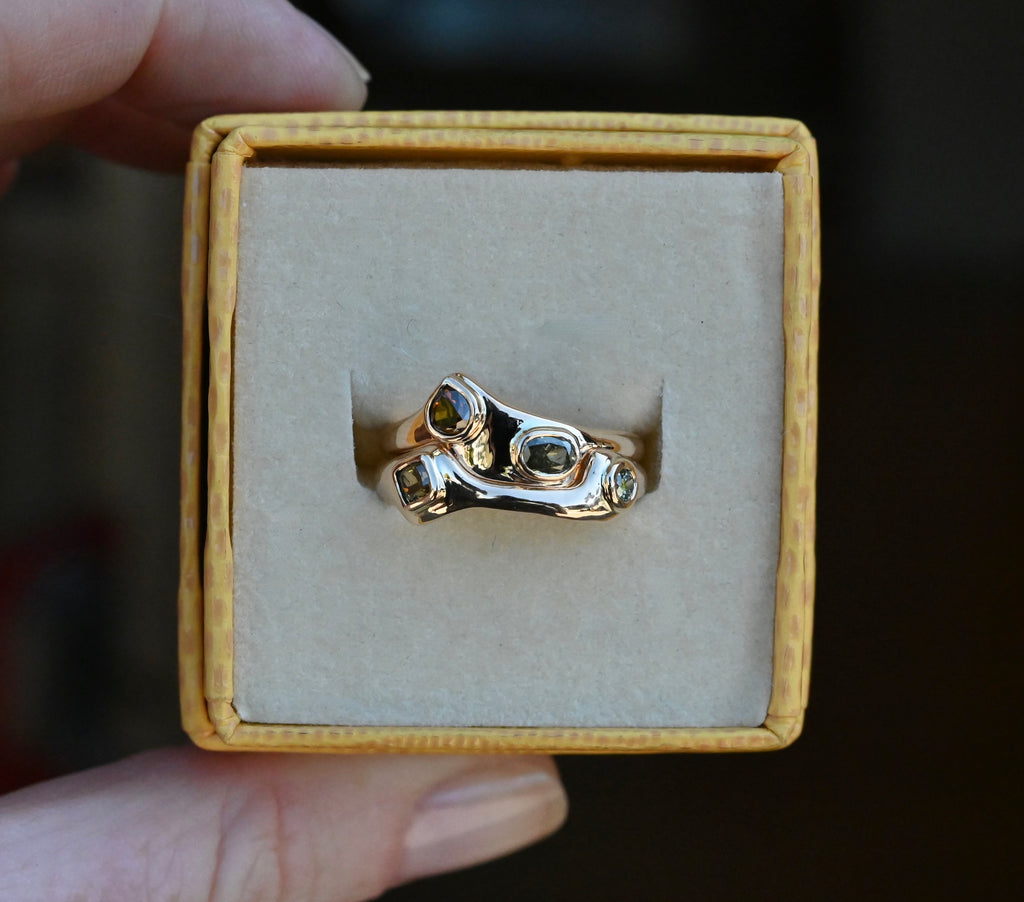 14k Gold Freeform 4 Stone Ring Setting - Made To Order
