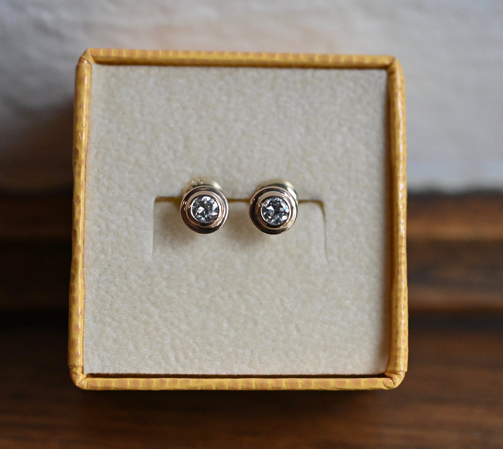 Diamond Disc 14k Gold Studs Setting - Made to Order