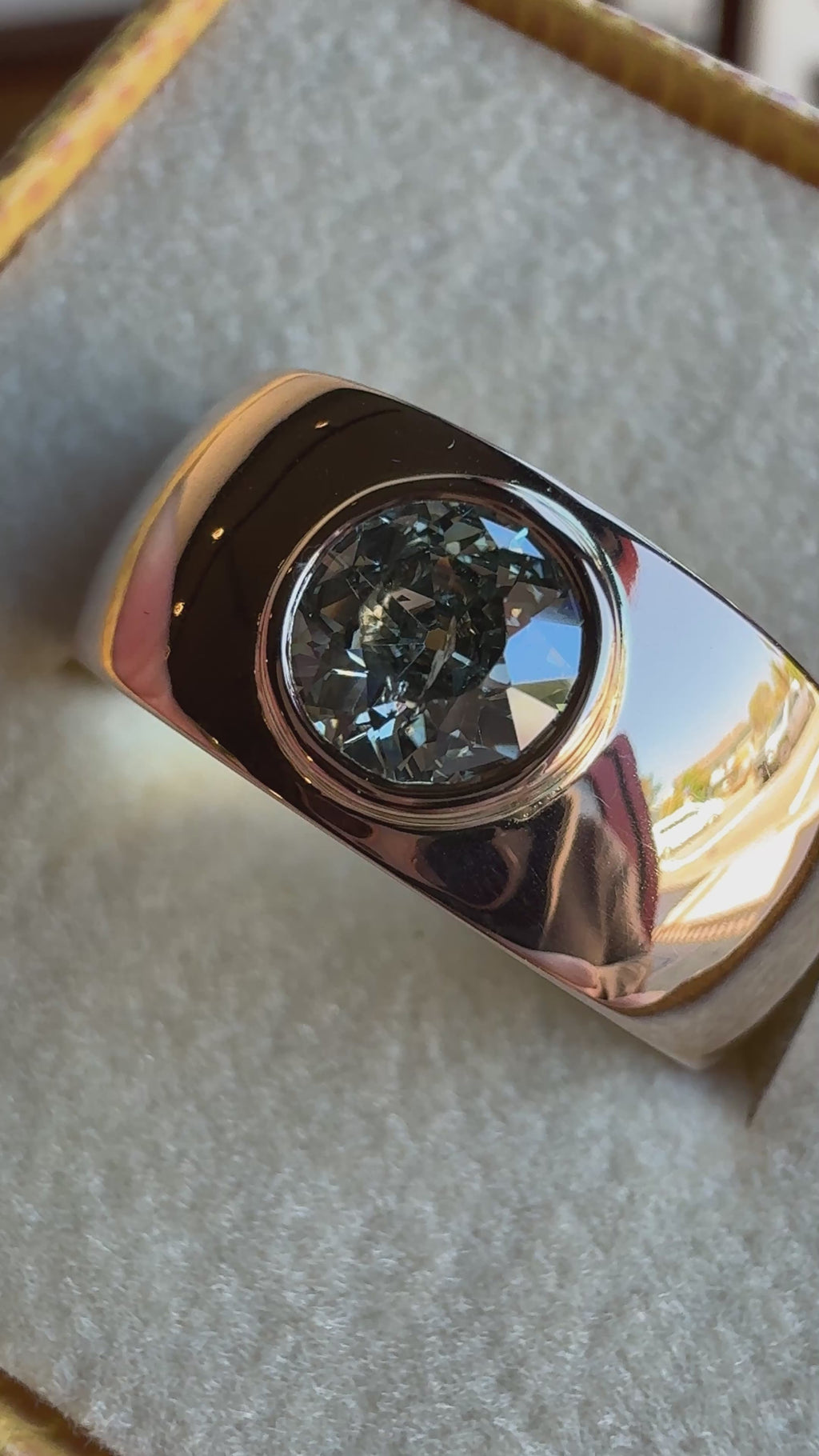 Set in a hand carved slightly rounded, heavy cigar band. 11.39g!